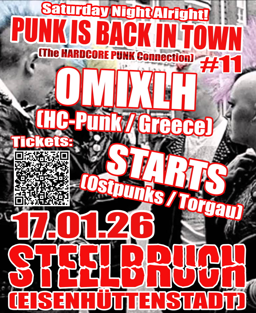 Mächtig was los im Barrio, kaum ist der Wischmopp durch den STEELBRUCH geglitten, wird schon das Mikrophon für die nächste Sause justiert. HALLOWEEN Oi! IN HÜTTE: RECKLESS UPSTARTS IM STEELBRUCH! Immer wieder schön, wenn man gute Freunde im STEELBRUCH begrüßen darf. So zB. die RECKLESS UPSTARTS. Die Canada Oi!sters sind …